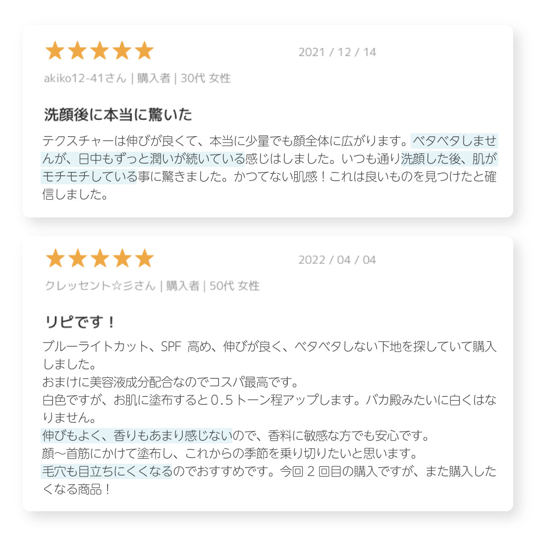下地用として販売はしておりませんが、「下地のような保湿感とツヤ・補正感」といったお客様からのお声もございます。