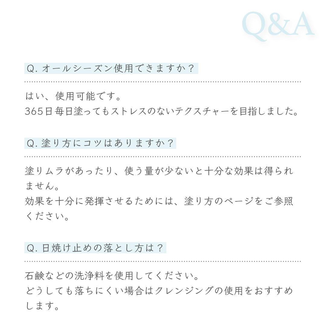 塗りムラがあったり、使う量が少ないと十分な効果は得られません。効果を十分に発揮させるためには、該当商品のページやブランドブックに記載されております塗り方をご参照くださいませ。