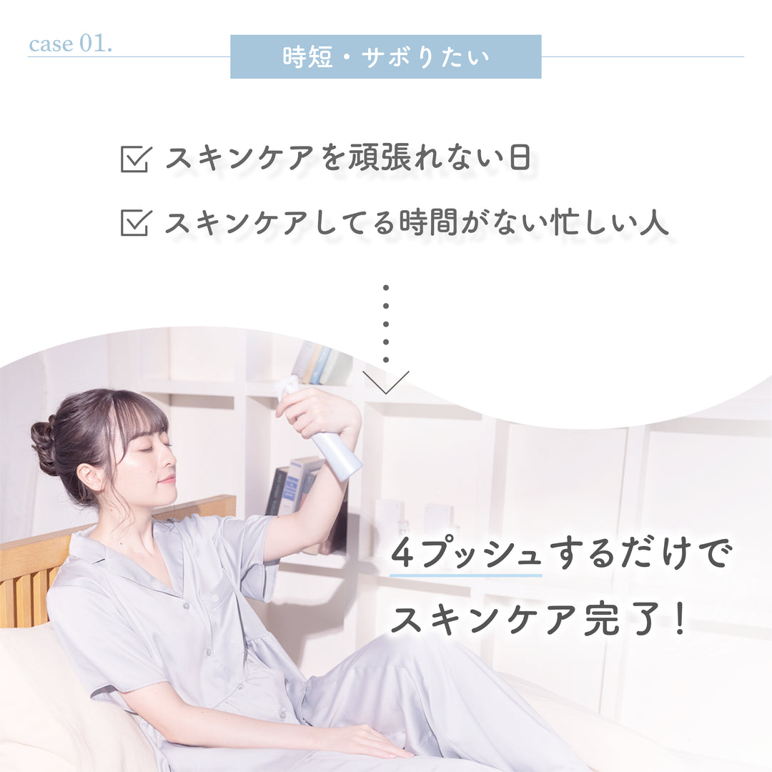 簡単なスキンケアを担う分にはこれ1本で大丈夫です。より乾燥が気になる方、念入りなスキンケアを行いたい方は、別途、化粧水・美容液・乳液・クリームをご使用ください。