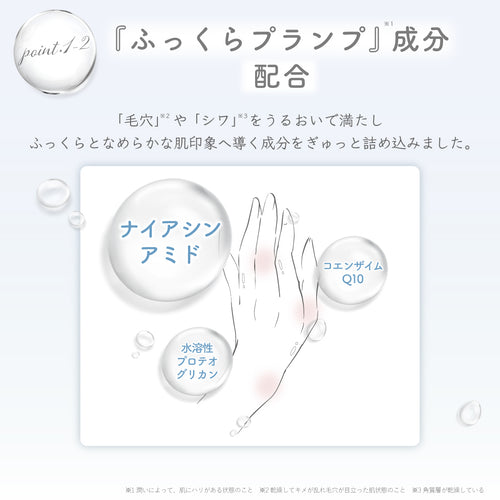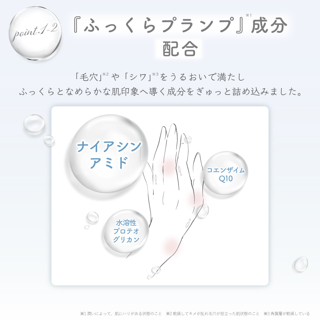 もの 2度目の購入です。保湿だけではないふっくら感が実感できて大好きです!ポンプ式なので出しすぎや蓋が閉めれないこともなく使いやすさも最高です!