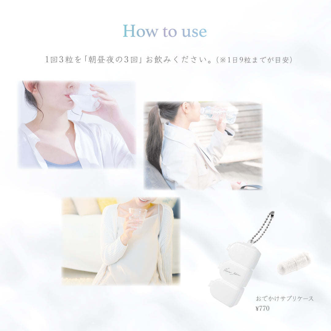 1回3粒を「朝昼夜の3回」に分けてお召し上がりください。