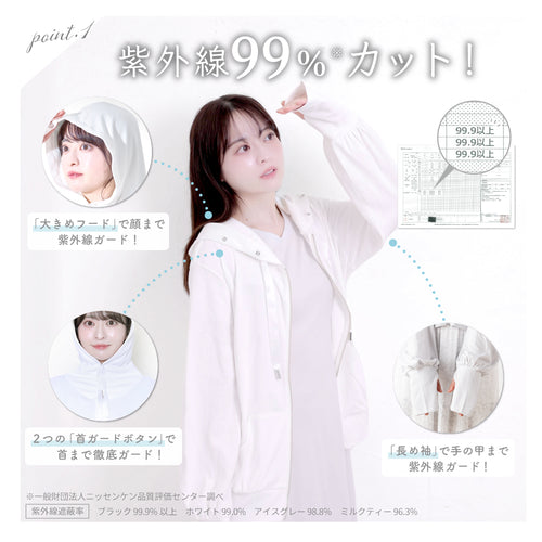 ★新発売★ UVカットパーカー[ロング丈] Sun Crush!UV hoody 〜夏雪草〜[ロング丈]