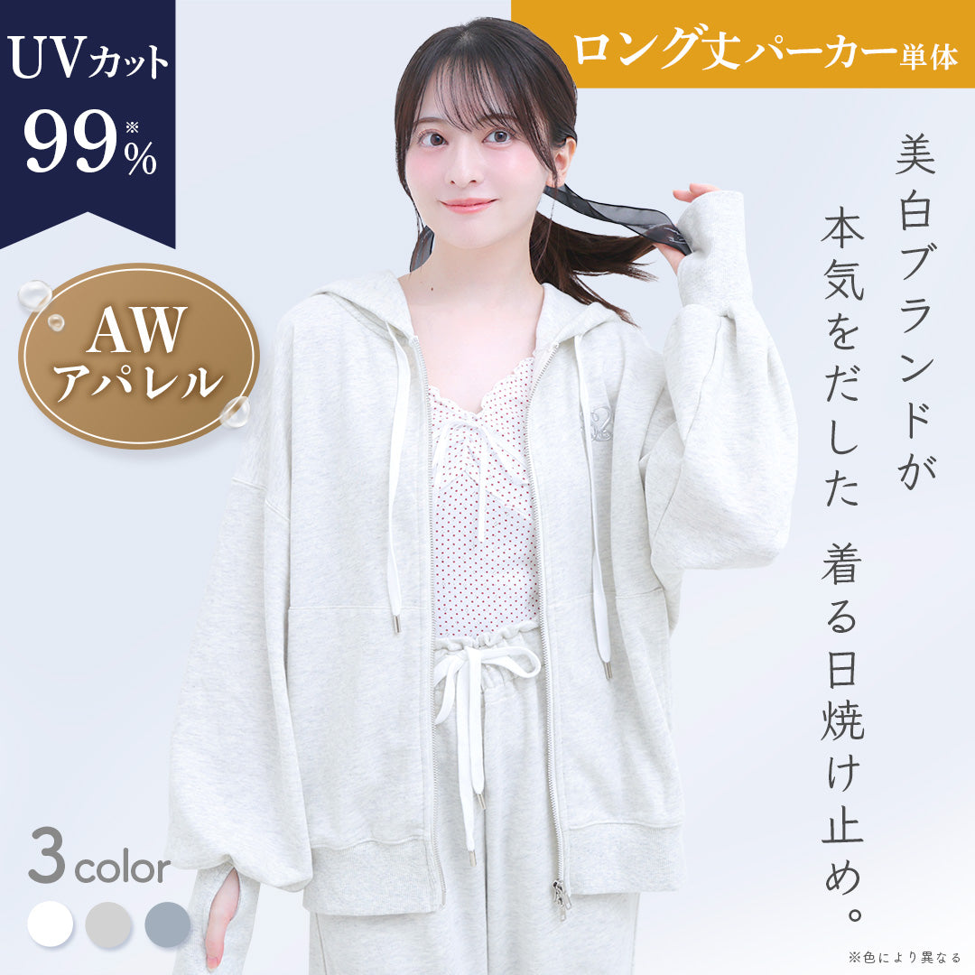 【AWアパレル】UVカットセットアップ[パーカー] ★ロング丈★Sun Crush!UV setup 〜雪椿〜[パーカー]