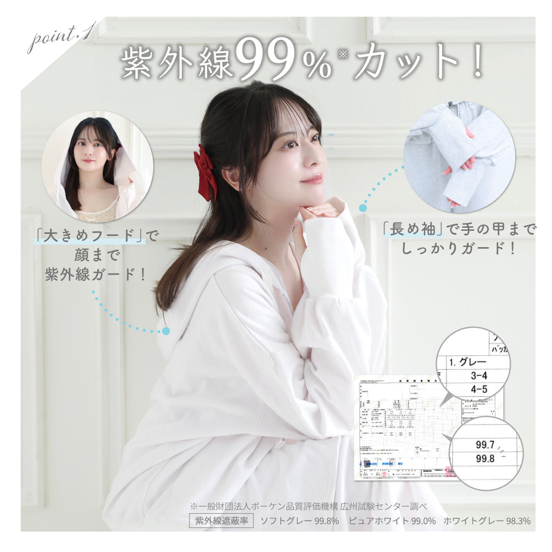 一方、【UVカット素材】ではどうしてもごわついてしまい、心地よい肌触りが損なわれるため、あえて【UVカット加工】を採用しております。