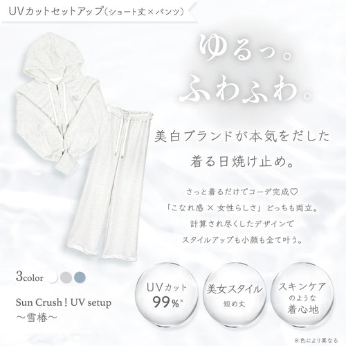 UVカットセットアップ 【10/10新発売!】★ショート丈×パンツ★Sun Crush!UV setup 〜雪椿〜